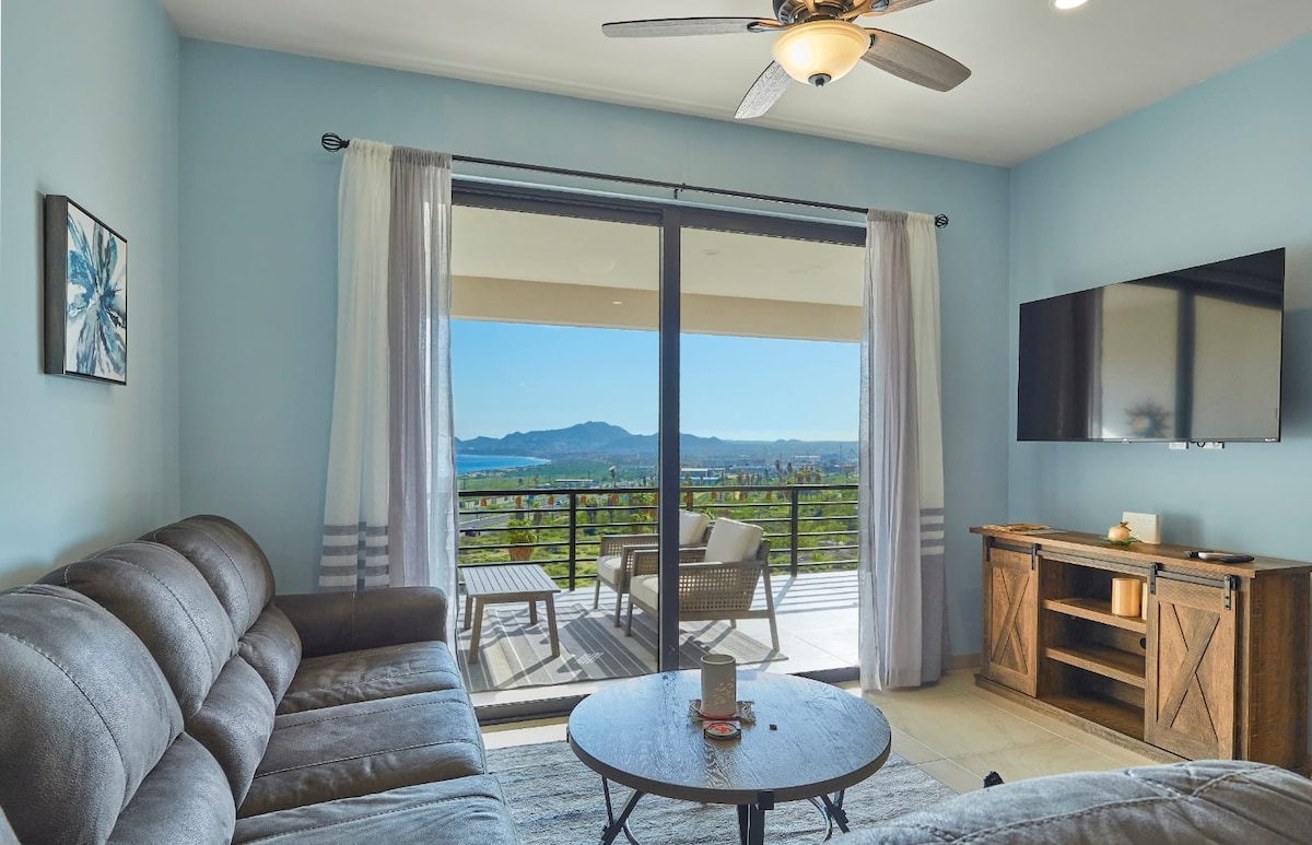 Despierta con vistas al mar hasta Land’s End y disfruta tu terraza privada con asador y fogata. Este penthouse se ubica en una comunidad tipo resort con alberca infinita, gimnasio y seguridad 24 h, a solo 5 min de la playa Médano y del centro de Cabo. La cocina está totalmente equipada y ofrecemos sillas, toallas y sombrillas de playa. Las familias disfrutan el área infantil y el jardín, mientras que las parejas brindan al atardecer en la terraza. ¡Tus vacaciones comienzan al llegar!