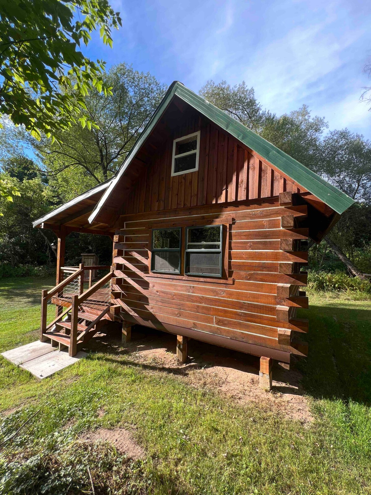 Remote, tranquil, quiet and private getaway on 5.8 acres on the banks of the Elk Creek; only 1.5 hours from the Twin Cities! This creek is known as a class 1 trout stream. Guests can enjoy fishing, sight seeing, canoeing and kayaking the Chippewa River or Elk Lake, biking, hiking, atv/utv and snowmobile trails nearby as well. Enter a world of peace and calm deep in the woods. This is a beautiful rustic cabin that has been beautifully restored. Permit issued and inspected by Dunn County.