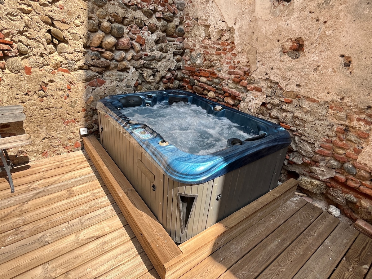 Casa con encanto que combina piedra y modernidad, con 4 dormitorios grandes (9 personas) 3 dormitorios con cama doble y un dormitorio con 3 camas individuales, patio de piedra, terraza de madera, jacuzzi, brasero y zona de relajación y comedor al aire libre. A 10 min de las playas, de Colliure y de Perpiñán, a 15 min de España. 1 plaza de aparcamiento + aparcamiento gratuito a 100 m. ¡Ideal para familias o amigos!