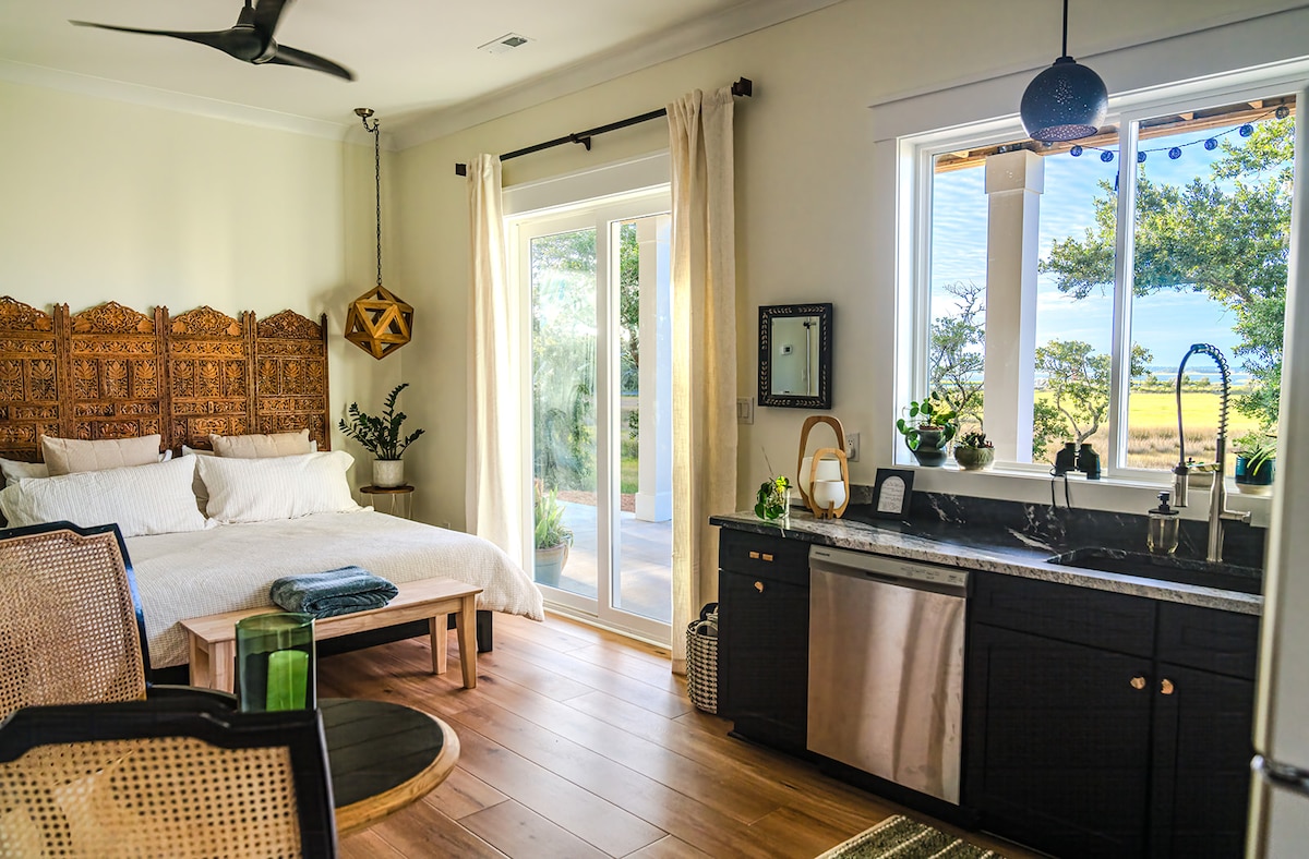 Llamada así por el enorme roble vivo de 250 años de antigüedad en el patio delantero, la casa del árbol de la isla está al final de la calle de la playa. El espacio ampliamente renovado, que incluye un nuevo aire acondicionado central, es abierto y relajante, con una terraza privada con vistas a un exuberante jardín. Ducha exterior grande y relajante. Te encantará la ciudad, los restaurantes, los carriles bici, la rampa pública para botes y la gente amable. El muelle de Bogue está a poca distancia a pie para hacer turismo o pescar en el mar. Este alojamiento es perfecto para parejas, aventureros solitarios o viajeros de negocios.