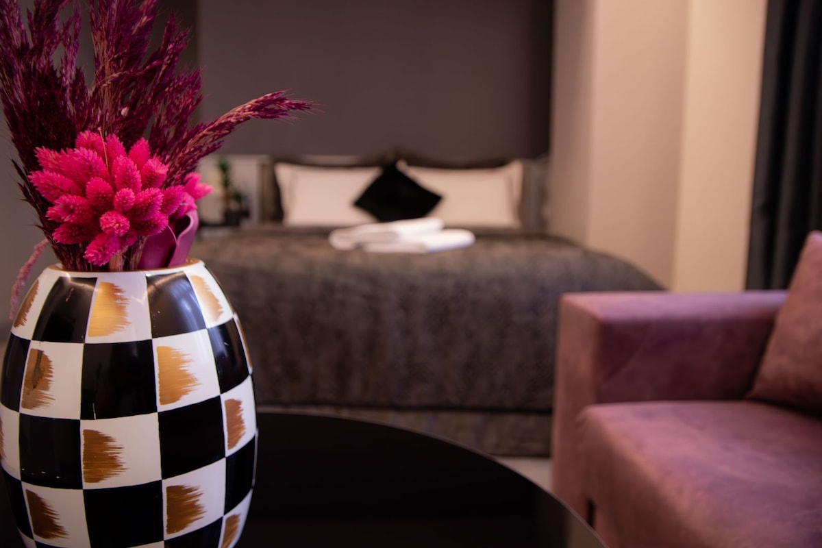 This unique apartment is in our modern boutique hotel in Ortaköy, Istanbul, just a 2-minute walk from Ortaköy Coast, the iconic Bosphorus Bridge, Ortaköy Mosque, and popular kumpir and waffle shops. It features a spacious bedroom, a living room, and a private backyard garden fully furnished for outdoor relaxation. With two air conditioners, a fully equipped kitchen, a washing machine, and a 40-inch TV, the luxurious and modern design ensures a comfortable stay for two guests.