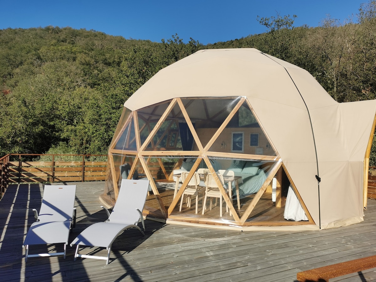 Nuestra cúpula te ofrecerá un ambiente único, cerca de la naturaleza y con gran comodidad. Viva una experiencia insólita durmiendo en un nido lleno de encanto con techo panorámico situado sobre los olivos... Es ideal para vivir este momento de evasión en pareja o en familia. Todas las comodidades están ahí: cama doble, 1 cama doble convertible de gran confort y 1 sillón cama para una persona, también baño privado en el alojamiento...