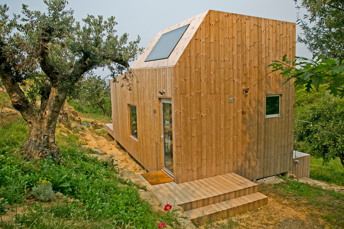 Pequeña casa en madera de 32 m2 , arquitectura moderna de líneas rectas, interior sencillo y funcional con mucha luz. Totalmente equipado para 2 personas con una cama doble en un entresuelo con vistas al mar. Tiene una terraza exterior que está semi-suspendida sobre el jardín.