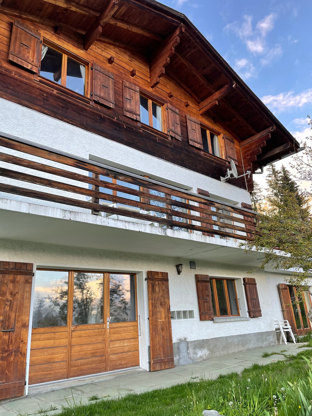 Welcome to this charming classic Swiss chalet within walking distance of public transit to the ski lifts. Enjoy its beautiful views and a cozy warm atmosphere. Perfect for both families and weekend getaways among friends. Bienvenue dans ce chalet charmant situé proche des transports publics. Profitez des vues épatantes sur les alpes Suisses, de fondues conviales, et d'une expérience alpine authentique! Parfait pour les familles et les weekends entre amis.