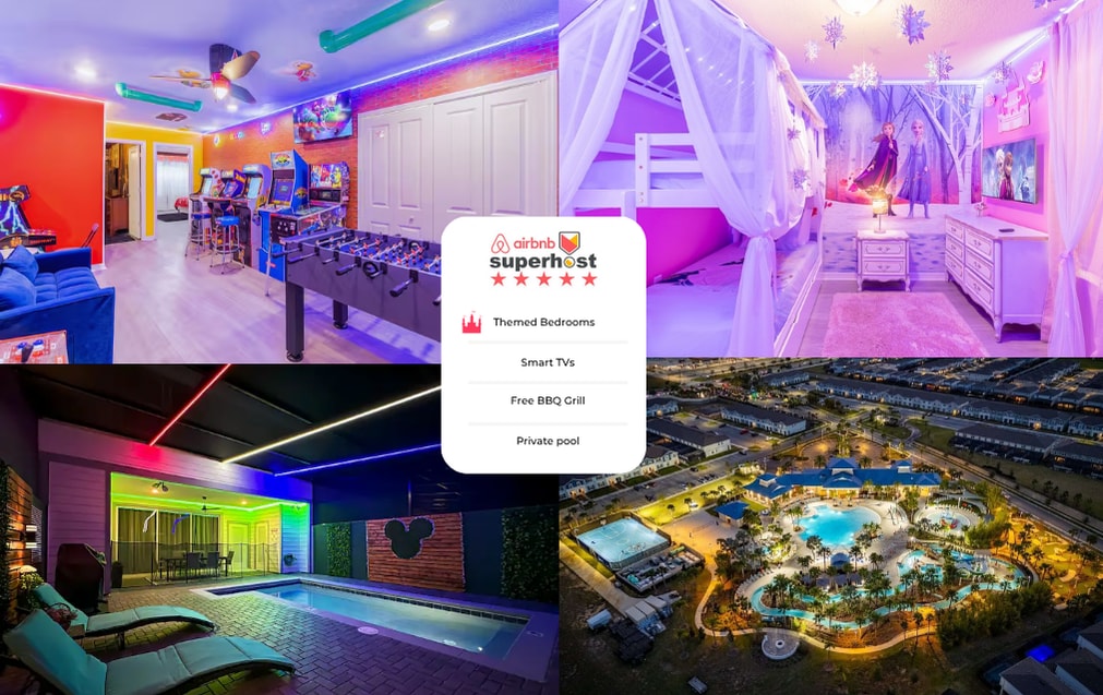 ¡Sin comisiones de Airbnb! Piscina temática/privada, sala de juegos 242101