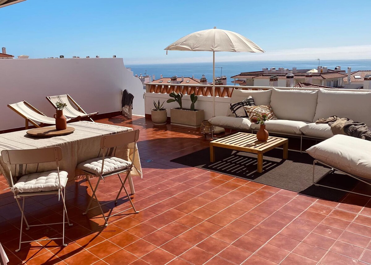 ¡Ático con vista al mar y terraza en la azotea!