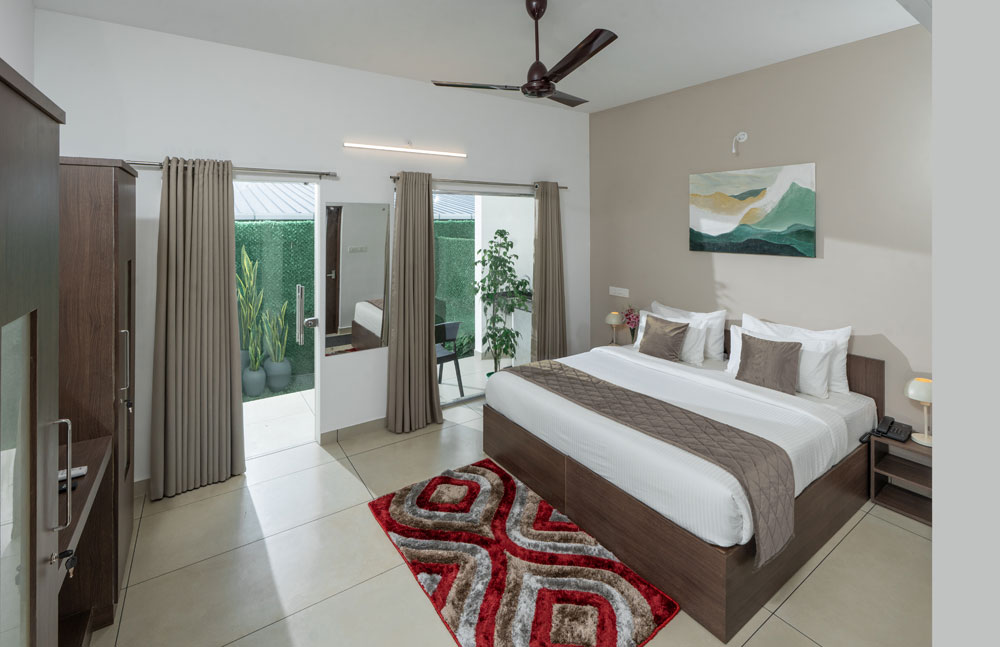 donde la comodidad se encuentra con la elegancia en el corazón de Kochi. Ya sea que estés de visita por negocios o por placer, nuestro hotel ofrece un ambiente cálido y acogedor con un servicio de clase mundial para que tu estancia sea inolvidable. Nuestras habitaciones están cuidadosamente diseñadas para proporcionar el equilibrio perfecto de lujo y relajación, muebles cómodos y decoración elegante. Llamada equipada con wifi de alta velocidad, televisores de pantalla plana, lujosa ropa de cama y asistencia a la habitación las 24 horas para garantizar tu máxima comodidad.