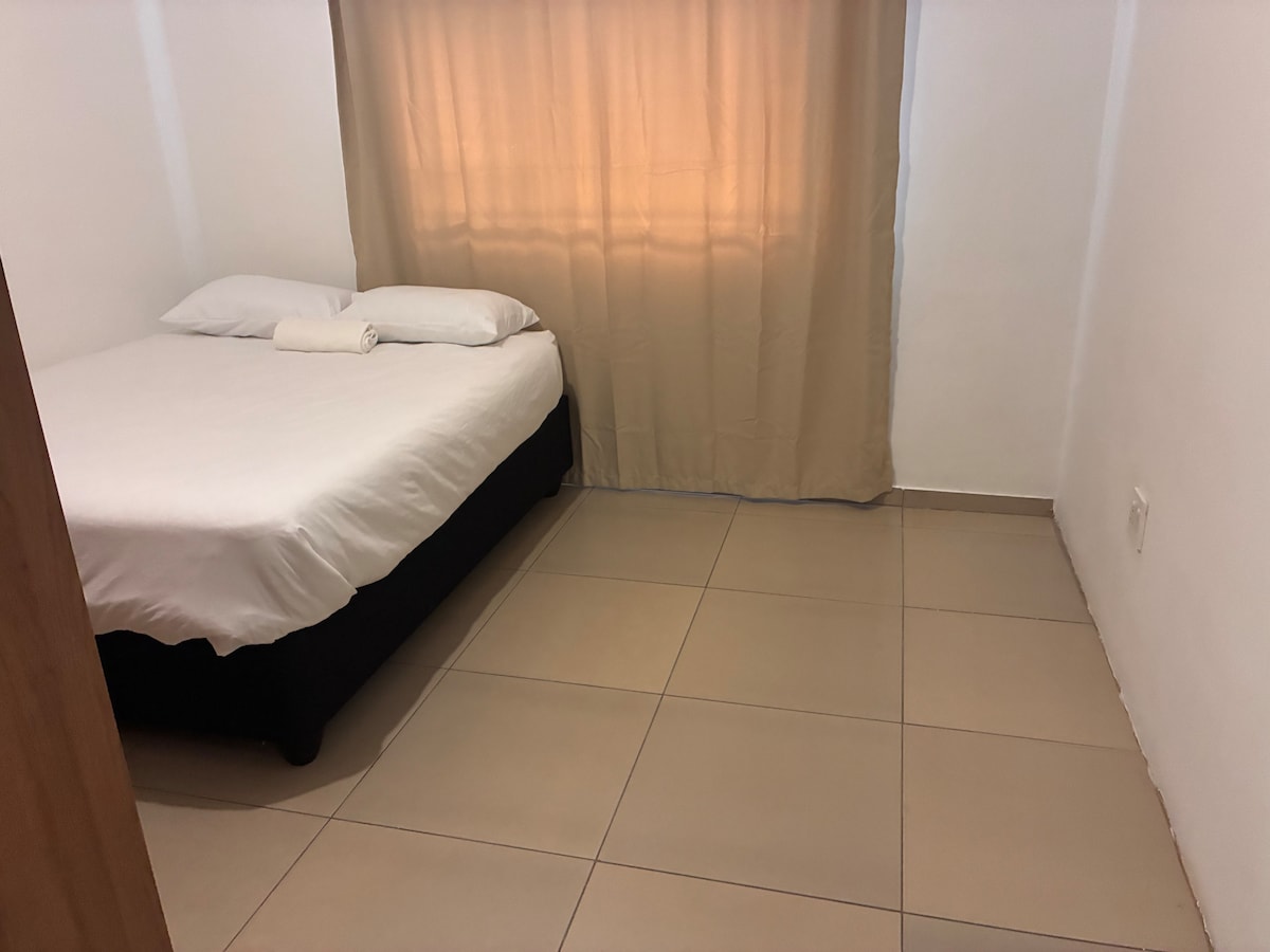 Este moderno departamento de planta abierta tiene capacidad para 2 personas con 2 camas individuales de lujo. Baño privado con ducha e inodoro separado. Nevera de cocina totalmente equipada, microondas, estufa de mini chef, ventilador, TV DSTV, TV DSTV, paquete prémium, paquete prémium y wifi. Los huéspedes tienen acceso propio a un jardín privado y estacionamiento gratuito en las instalaciones para reservar para tus vacaciones familiares perfectas.