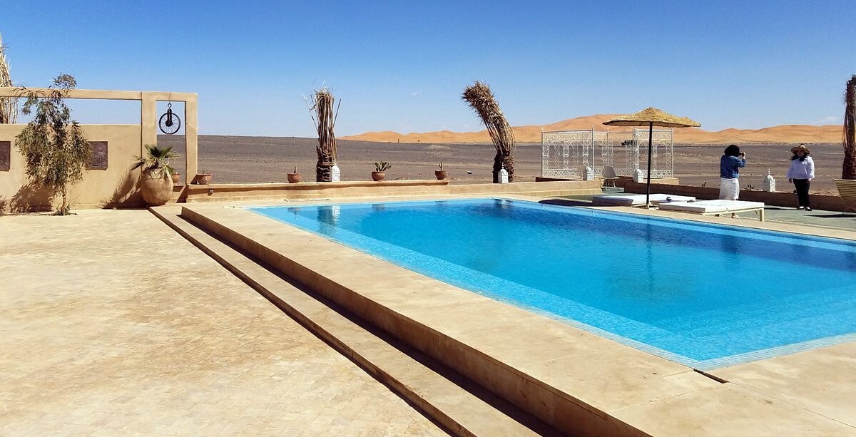 Discover Riad Nezha, a charming traditional riad in Merzouga, Morocco — just steps from the stunning Erg Chebbi dunes. Featuring 8 comfortable rooms for up to 22 guests, our riad blends authentic Moroccan style with modern comfort. Enjoy a relaxing pool, terrace views, local cuisine, and warm Berber hospitality in the heart of the Sahara Desert.