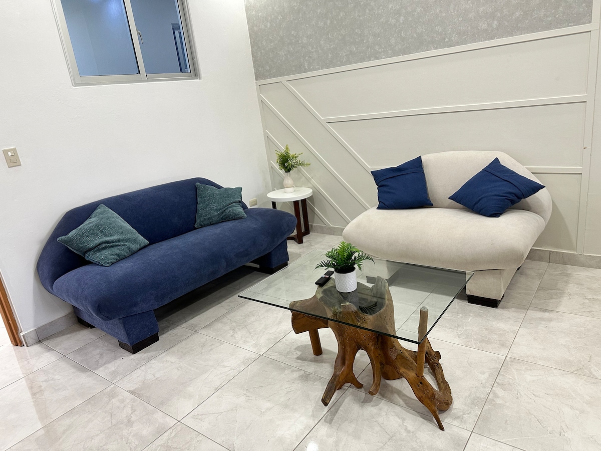 Relájate en este espacio tan tranquilo y elegante. Es un apartamento completo con 2 habitaciones bien equipadas y un área de terraza privada en el ultimo piso. Es interesante ya que esta en una urbanización totalmente cerrada con seguridad, control de acceso, parque y helipuerto. Es un tercer nivel, todas las habitaciones tienen aire acondicionado y la sala también. Visitanos y no te arrepentirás.