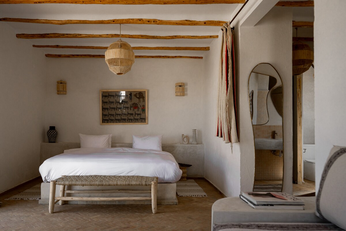 Bienvenido a WINK House, una serena escapada al campo cerca de Esauira y a 10 minutos de la playa de Sidi Kaouki. Nuestra propiedad única cuenta con un microentorno excepcional, una piscina privada increíblemente grande y una mezcla exquisitamente elegante de diseño moderno con un guiño a la tradición. Sumérgete en una comodidad inimaginable. Con nuestro atento y servicial gerente, tu estancia será extraordinaria. Descubre la armonía perfecta de la naturaleza y el refinamiento en WINK House.