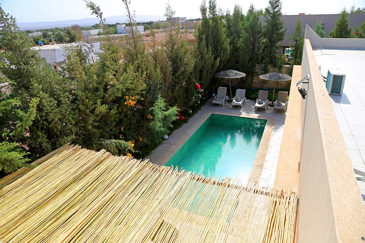 Nuestra casa Bab Chouia se encuentra en el campo de Esauira, rodeada de bosques de argán. La tarifa incluye el servicio de un cocinero que prepara todas sus comidas y se encarga del mantenimiento diario de las habitaciones. Piscina de 4x9 m (con posibilidad de calefacción, con un suplemento en el precio global) y cancha de petanca. La casa es de estilo contemporáneo, pero respeta las tradiciones marroquíes (tadelakt, zelliges, alfombras de Tazenakt, tejidos de la medina, etc.). Aire acondicionado - Internet