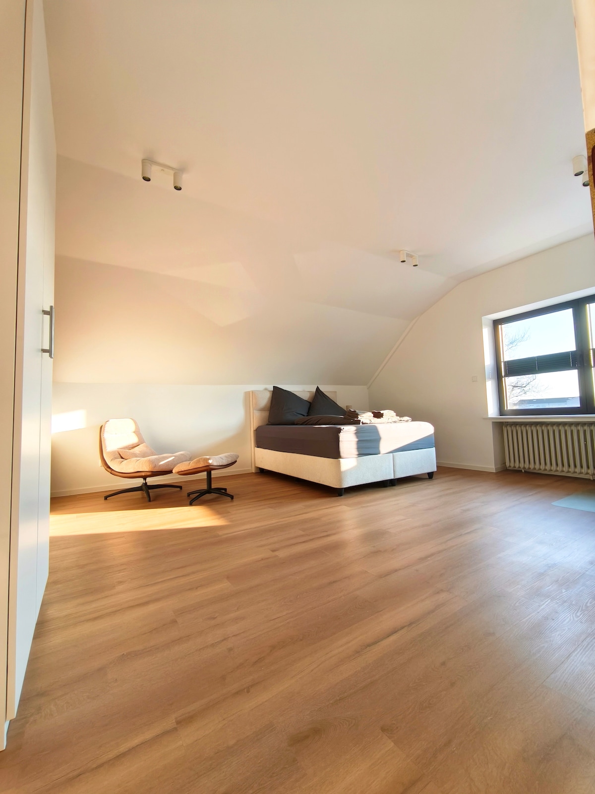 Departamento totalmente equipado en el primer piso superior y ático de nuestra casa. Balcón de 20 metros cuadrados orientado al sur/oeste para tardes y noches soleadas y acogedoras. Anliegerstraße tranquilo, convenientemente ubicado - 3 minutos de la A 42. A 800 m de Erzbahntrasse (carril bici nacional), 6 campos de golf a 15 km. 6 centros comerciales (incluido el centro más grande de Europa) a 15 km. Zoom Adventure World 3 km, Parque de cine 20 km.