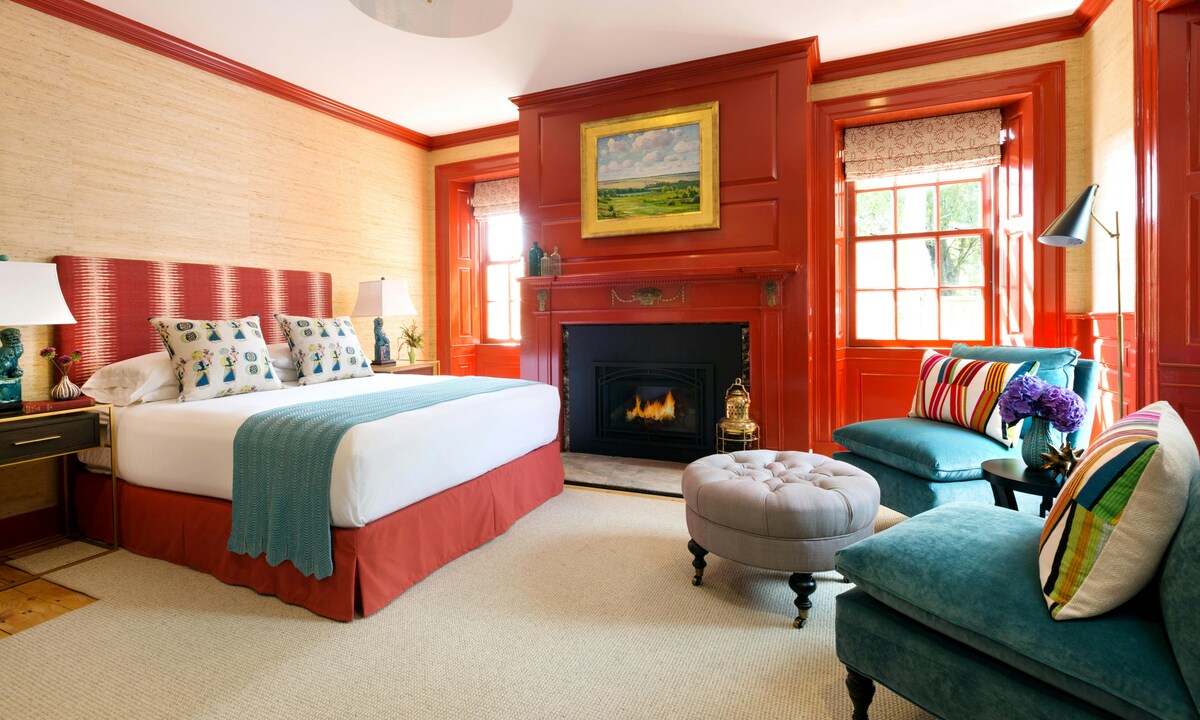 Nuestras habitaciones Queen Deluxe ofrecen un confort espacioso con detalles arquitectónicos únicos del arquitecto del siglo XVIII Samuel McIntire. Cada habitación cuenta con una lujosa cama tamaño queen con un cabecero acolchado personalizado, una chimenea de gas, un televisor inteligente LED de 40" y un acogedor sillón. Disfruta de aire acondicionado con control individual, wifi gratuito y baño privado con ducha y suelo radiante. Ubicado en el segundo y tercer piso, tenga en cuenta que no hay ascensor en nuestra propiedad histórica.