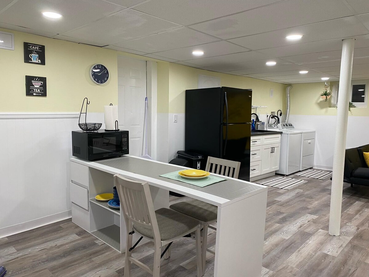 Este apartamento en un sótano se encuentra en una casa privada. La familia vive arriba. Situado en un barrio tranquilo cerca del aeropuerto de Newark (EWR) y Nueva York. El apartamento está a 10 minutos del aeropuerto de Newark (EWR). A 12 minutos de Newark Penn Station y del centro de Newark. A 2 manzanas del autobús a Nueva York. El dormitorio tiene una cama tamaño queen. El salón tiene un sofá cama y chimenea. Baño con ducha de pie. Cocina pequeña con placa eléctrica, nevera, microondas, freidora de aire, café (de filtro e instantáneo). No se permite fumar ni mascotas
