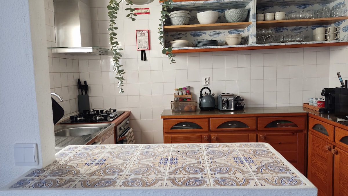 O apartamento (Penthouse) tem um terraço com vista Rio, com jardim vertical. Um quarto com cama de casal de 1,60 x 2,0 metros, roupeiros e cofre. Uma sala com sofá, TV, Netflix, Sistema de som Bluetooth Rotel. Bar com bebidas gràtis. Cozinha equipada com: Microondas, Frigorífico, Máquina de Lavar Louça, Maquina de lavar e Secar Roupa, Placa de Indução, Torradeira, Chaleira e Nexpresso. Casa de banho completa com bidé e duche, secador de cabelo e amenities (gel de banho, champô e creme corporal).