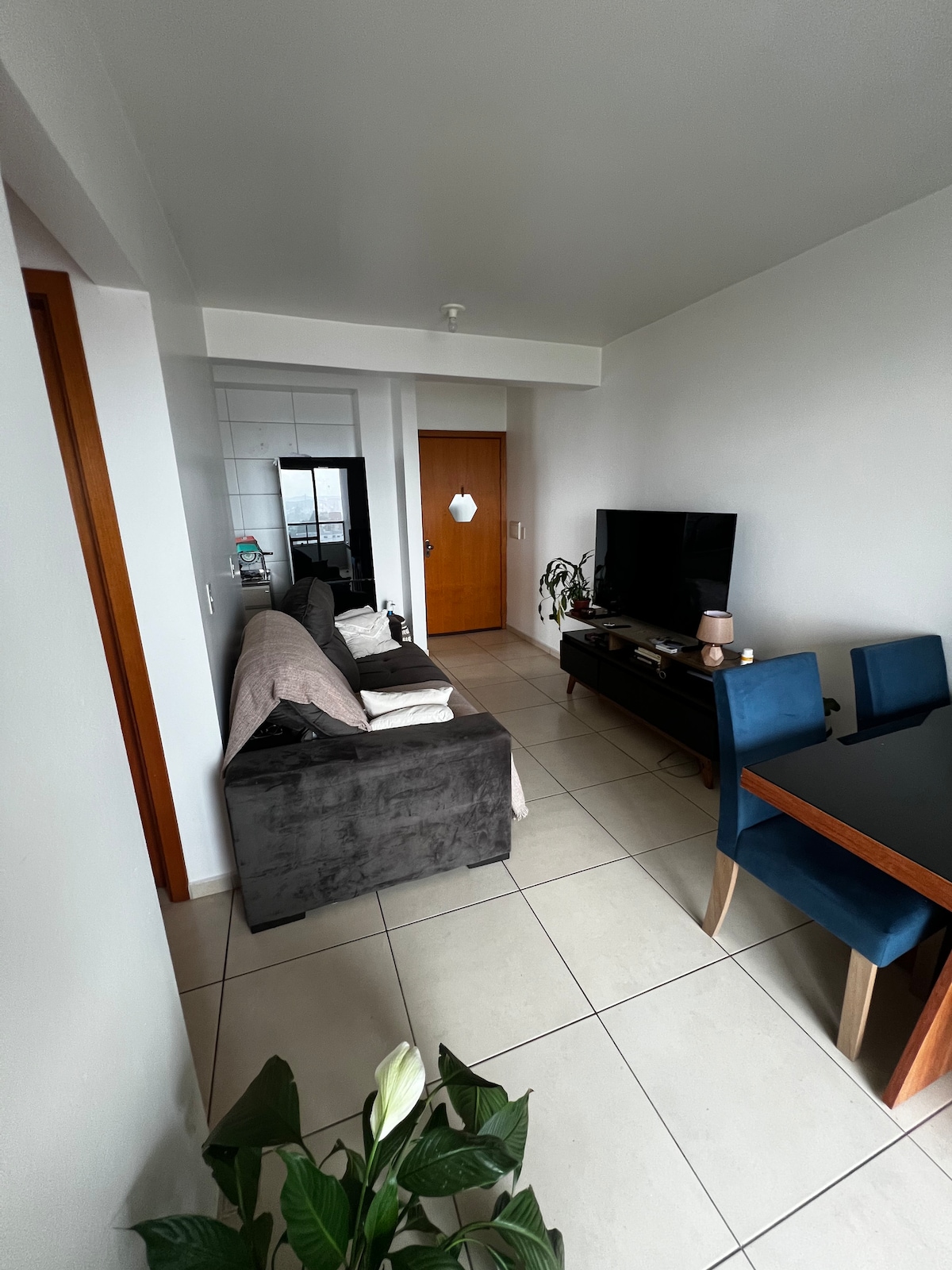 Apartamento inteiro, confortável e bem localizado, para até 5 hóspedes, próximo a parque, hospital e perto do centro da cidade. Excelente opção para famílias, turismo ou viagens a trabalho. Conta com 2 quartos, 3 camas (2 de casal e 1 de solteiro), sala com TV, Wi-Fi, ar-condicionado na sala e em 1 quarto, cozinha completa e banheiro. Possui fogão, micro-ondas, jarra elétrica, cafeteira, máquina de lavar, churrasqueira, secador de cabelo e ferro de passar. NÃO ACEITAMOS PETS E NEM FUMANTES.