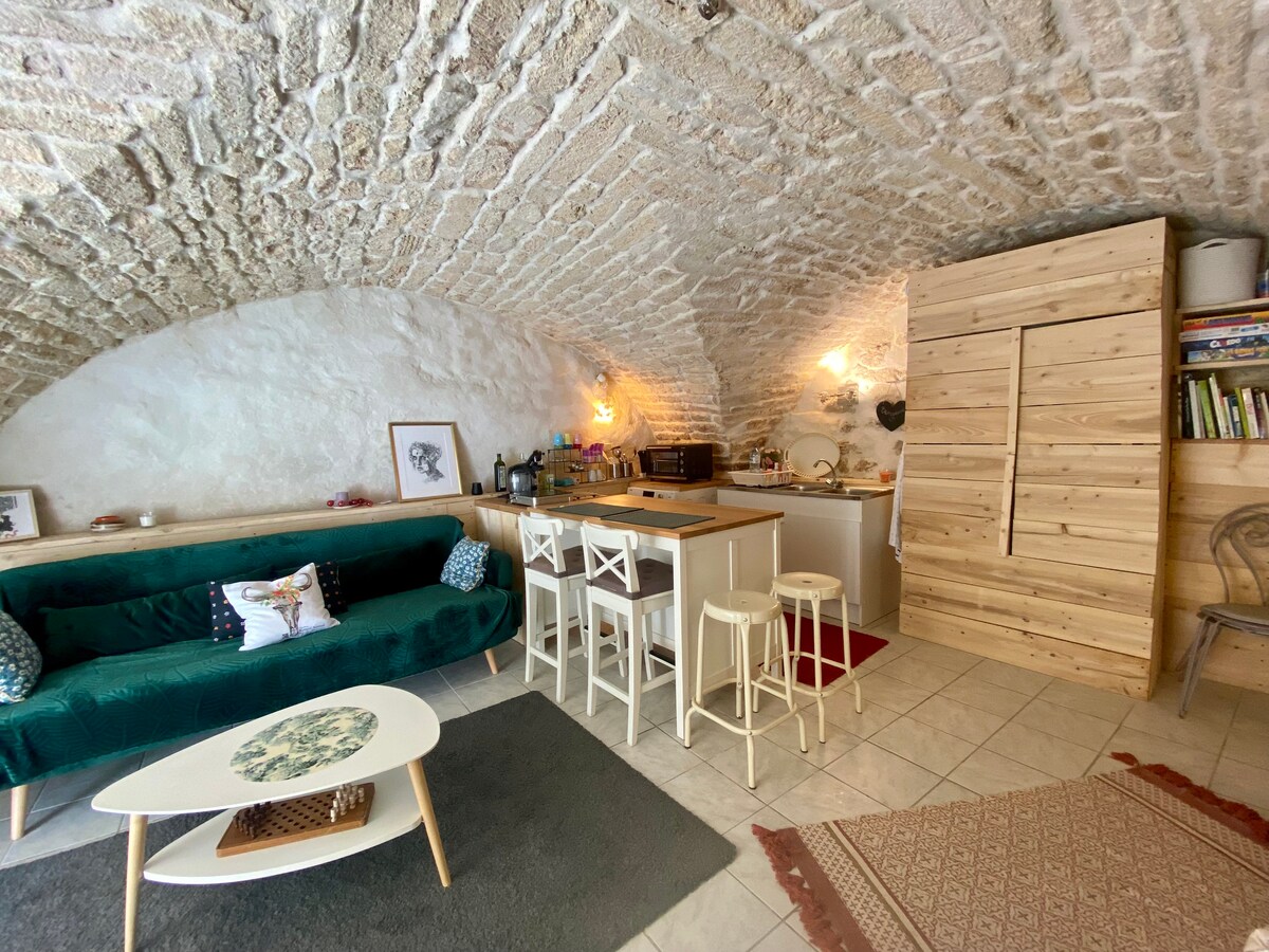 Clasificado como monumento histórico, Pignan es un pueblo medieval cerca de Montpellier. Se aloja en un antiguo corral de ovejas del siglo XVIII con hermosas bóvedas de ojiva. Las paredes se construyeron con cal y piedra de Pignan. Es una habitación grande de unos 20 m2 diseñada idealmente para 2 personas. Esta propiedad atípica se encuentra en la planta baja de nuestra casa en una tranquila calle peatonal del centro de la ciudad y cerca de pequeñas tiendas.