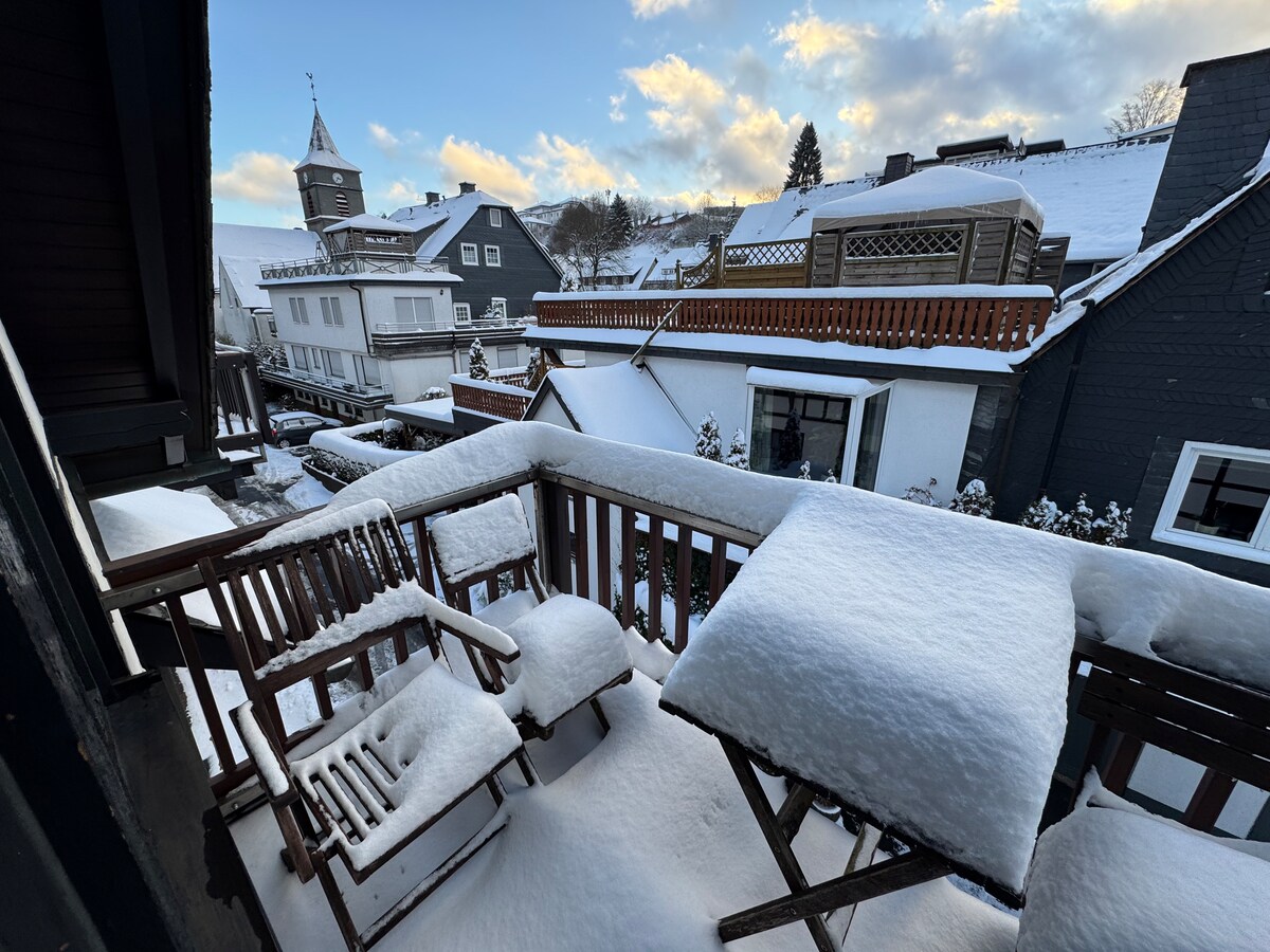 Welcome to our beautiful apartment in Winterberg! This cozy and newly renovated apartment can accommodate up to 4 people and is located directly at the ski slope and bike park. The location is perfect for those looking for central accommodation near the main attractions. . private sauna . private balcony with hammock . newly renovated 2023 . 100m to the bike park/ski slope . fireplace (elect.) . King size box spring bed . free, fast WIFI . Bicycle/ski cellar