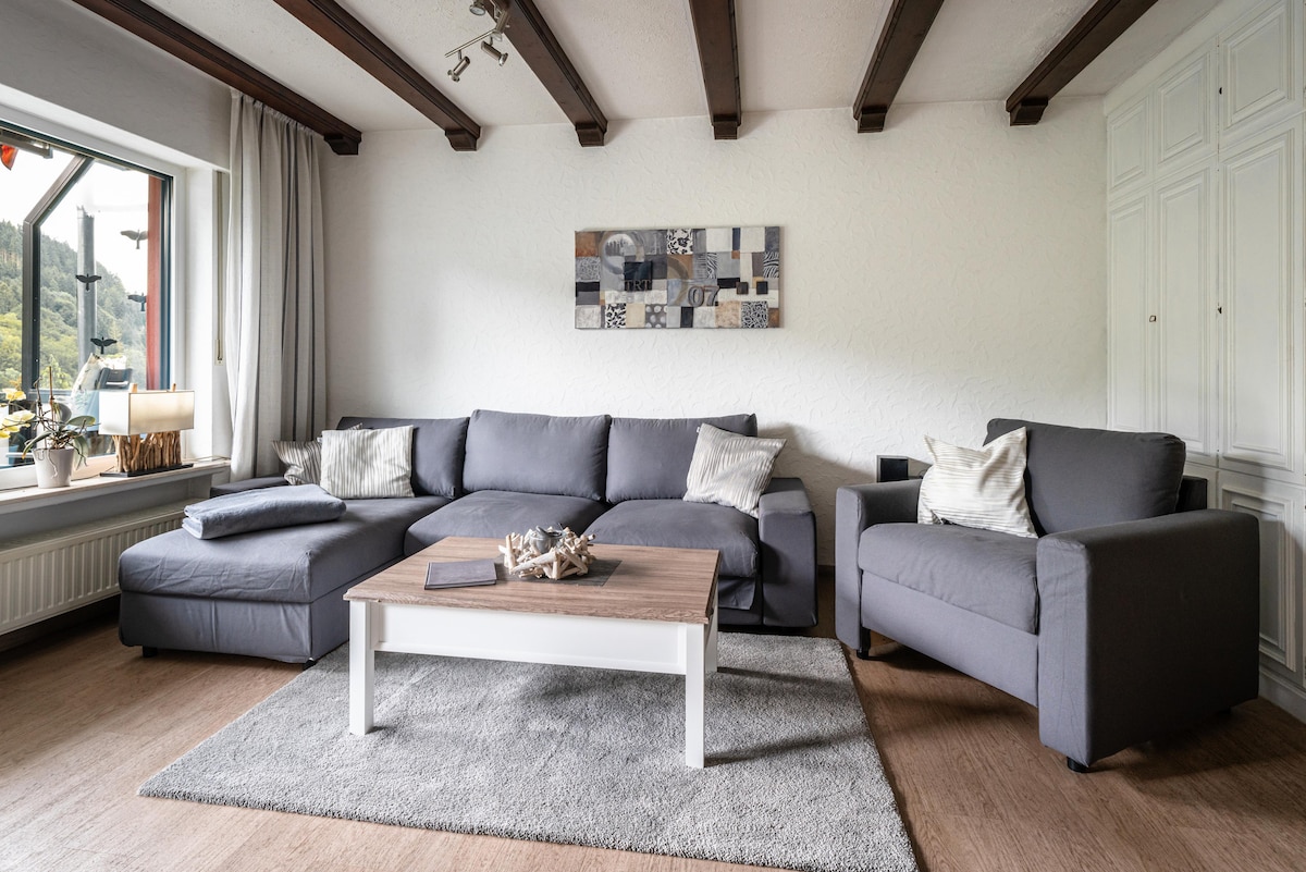 Lovingly furnished in the most modern style. The location of our apartment is the absolute highlight, to the center of Willingen you need only 2 minutes walk, then you will find the most popular places such as Brauhaus, Dorf Alm etc.. Despite the central location, you have a sensational view of nature and the mountains of Willingen on the balcony. There are enough free parking spaces that belong to the apartment building. In our apartment you can enjoy your vacation directly after entering.