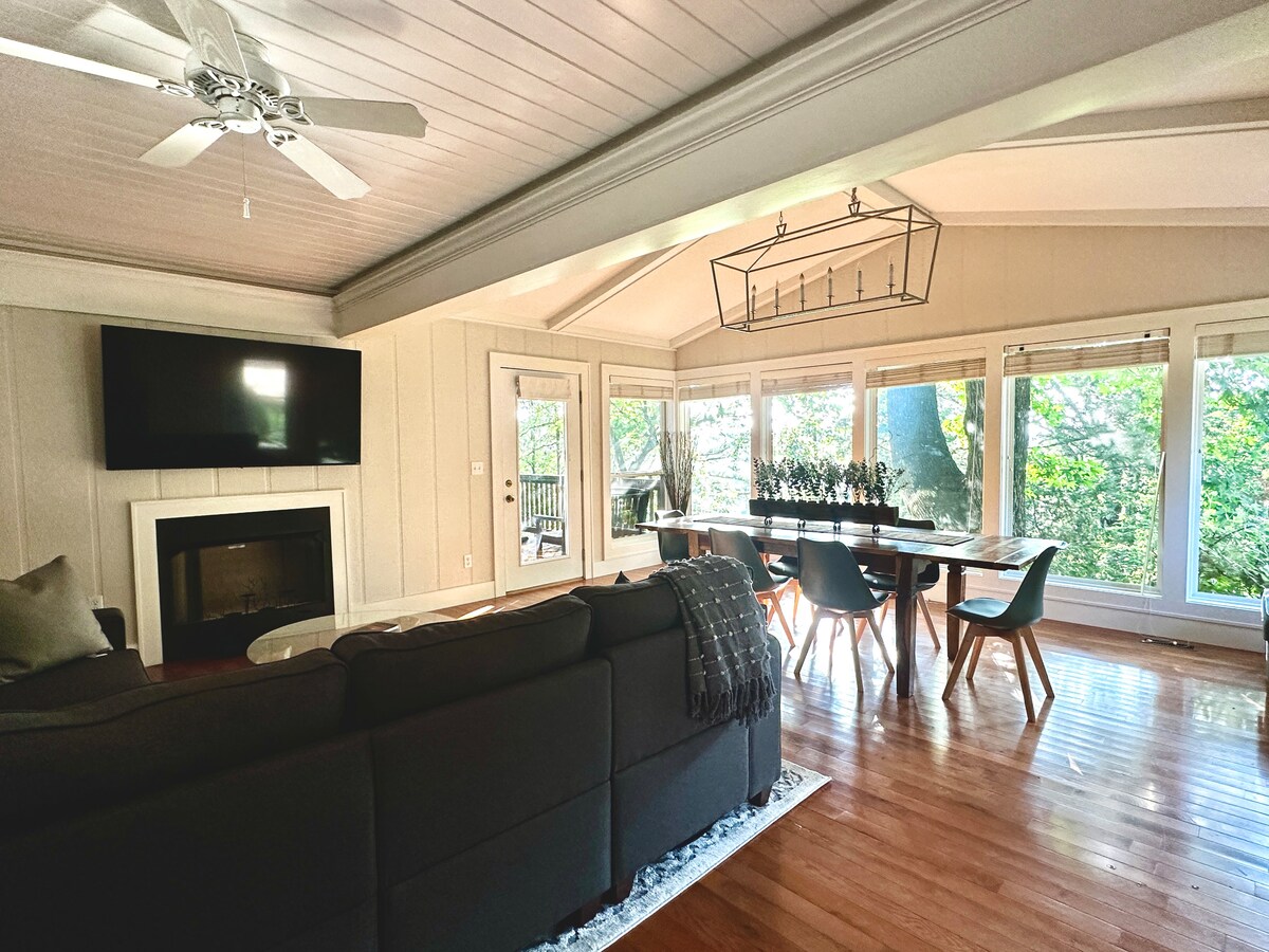 Located on Beaver Lake with a stunning view of the water and lots of amenities. Snuggle up to a cozy fireplace. Relax in a candlelit Jacuzzi for two (not a hot tub) overlooking the beautiful scenery of the Ozark Mountains. Doze off to sleep in a pillow-top, king size Sleep Number bed while gazing at the stars and tree tops through the glass gables. Enjoy the deck with gas grill and a complete kitchen fully-stocked with utensils & supplies. Pet Fee: $50 - 1st dog; $25 - each additional. 2 max.