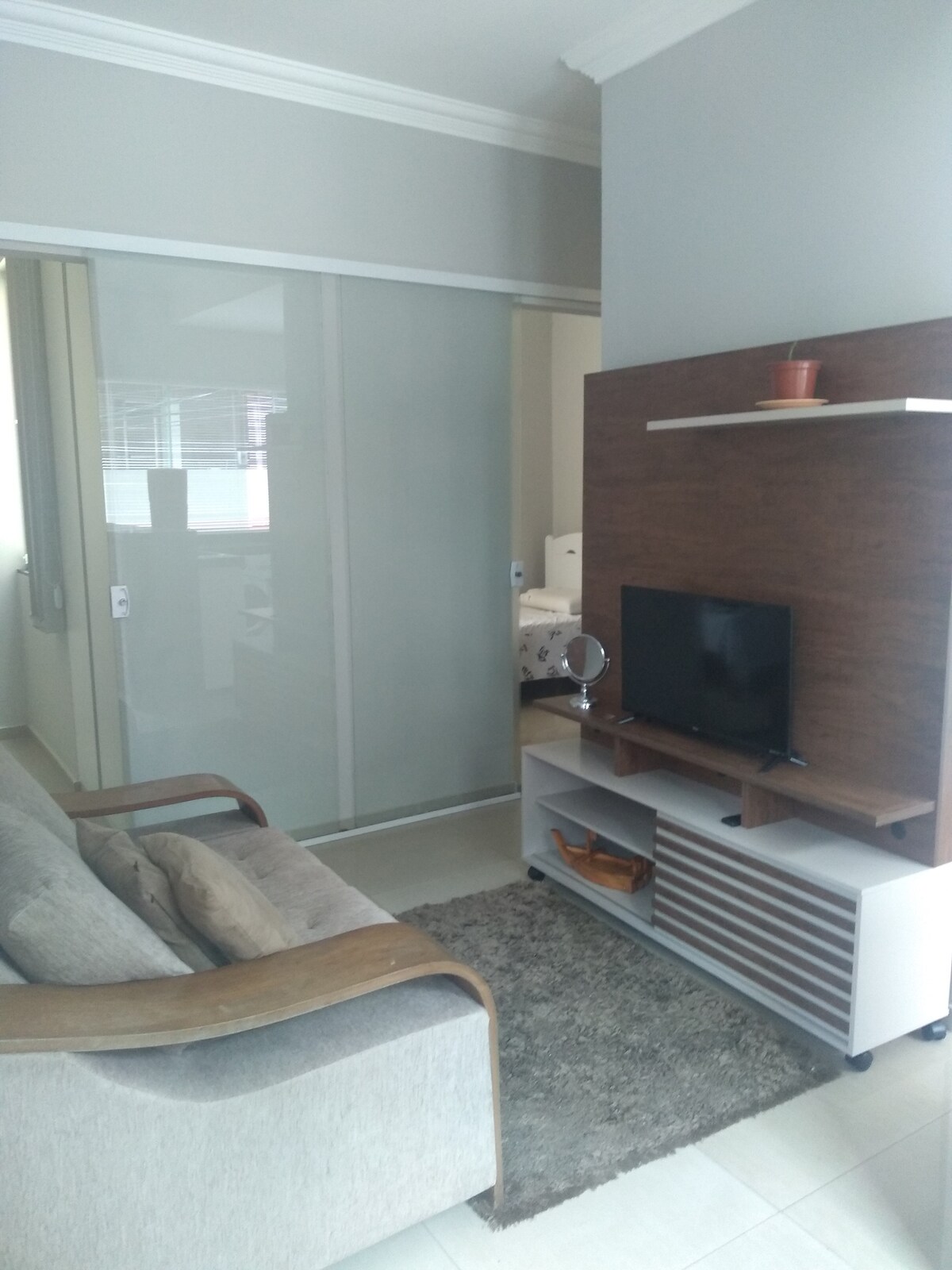 Departamento nuevo y amueblado, lugar tranquilo y acogedor. Cerca de la avenida principal del vecindario, cerca de panaderías, mercados, restaurantes, parada de autobús, sucursales bancarias, lotería... a 400 metros de la puerta UFJF y a 15 minutos del centro de la ciudad. Cuenta con un televisor inteligente, una cocina equipada con utensilios y dormitorios con ventiladores de techo. Departamento nuevo, limpio y organizado de la mejor manera. No tiene garaje, la calle es tranquila, los vecinos dejan sus vehículos y nunca tuvimos ningún problema.