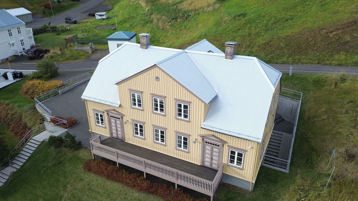 Your home away from home in the Arctic! Located in a traditional wooden house in the historical centre of Akureyri, this bright 100m apartment offers 3 bedrooms, a spacious living room and a fully equipped kitchen for your nordic dream holidays. Enjoy the view on the fjord! Restaurants and museums are in walking distance, as well as the coast, whale watching and hiking paths. 5 minutes to the airport, the skiing area and the world's northernmost 18 hole golf course.