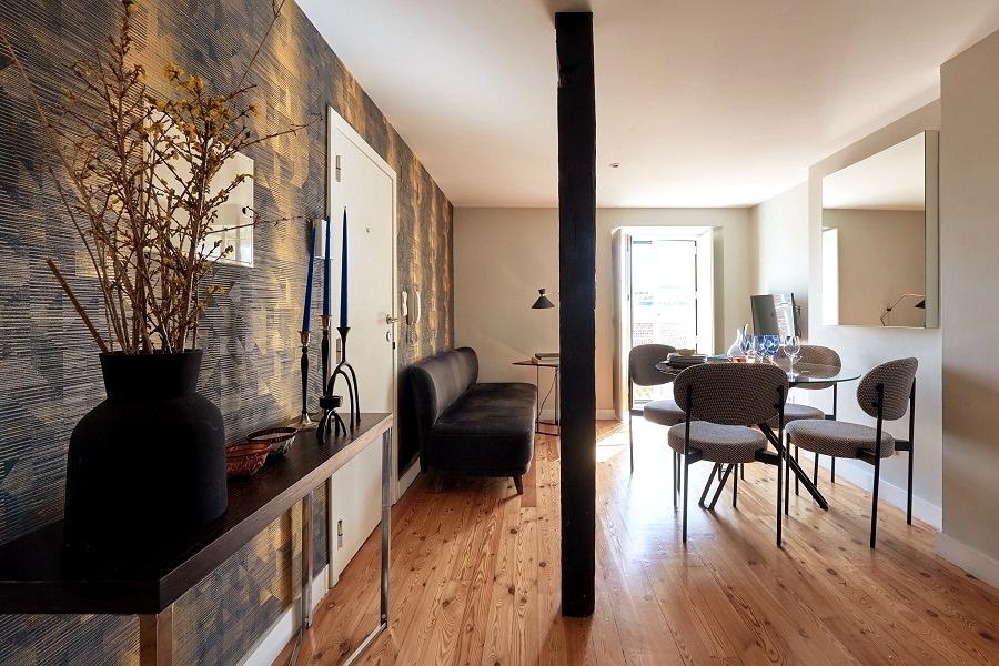 Nuevo apartamento totalmente renovado, equipado con aire acondicionado y calefacción, se encuentra en el corazón del distrito de Alfama. Este luminoso y bonito apartamento, en una tercera planta, es ideal para parejas y amigos. Combina un ambiente acogedor, una bonita decoración y comodidades modernas. Puede alojar hasta 3 personas (4 personas con niños pequeños menores de 13 años), dividido en 1 habitación con cama doble y un sofá cama en el salón.