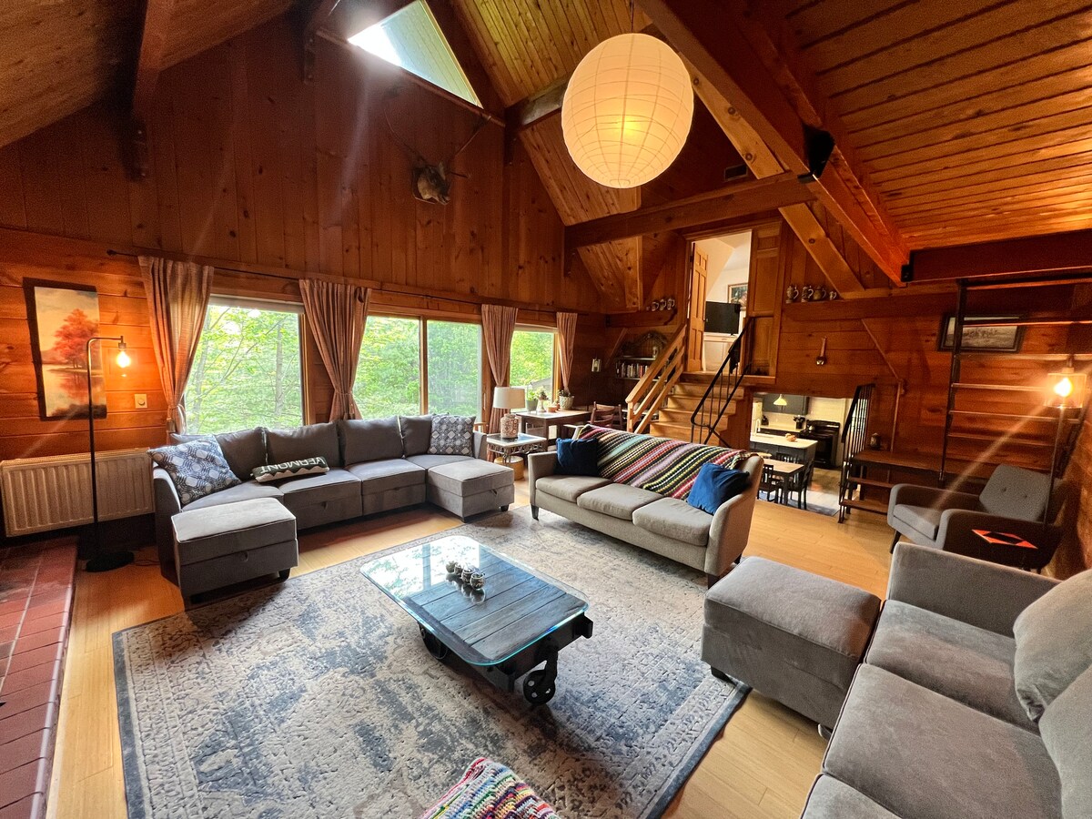 A 10 minutos de la interestatal, ven a disfrutar de nuestra acogedora cabaña de troncos de montaña verde con vistas a las montañas blancas en 50 acres de tierra. ¿Senderismo? ¿Buscas puentes cubiertos? ¿Esquí? Estamos a una hora de la mayoría de los principales centros vacacionales. ¿Motos de nieve? ¡Tenemos senderos por todas partes! O tal vez solo buscas relajarte con la familia y recargar las pilas. ¡Este es tu lugar! Dirígete al final de la montaña, al encantador pueblo de Bradford, echa un vistazo a la hermosa cascada o visita las tiendas.