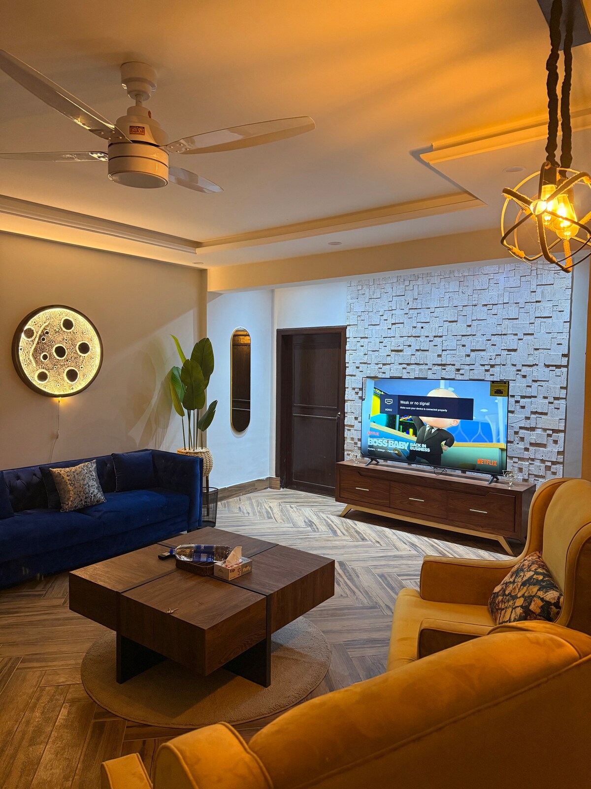 Entra en los apartamentos de 3 dormitorios de Flamingo Grand, los apartamentos con servicio más sofisticados y estéticamente emocionantes de Islamabad. Disfrute de una experiencia segura y con estilo en este lugar céntrico. Tanto si visitas Islamabad por placer como por trabajo, en Flamingo te aseguramos una experiencia de 5 estrellas. Los huéspedes también disfrutan de una plaza de aparcamiento gratuita y segura, wifi gratuito y la experiencia de ver sus series de televisión favoritas en el led inteligente de 65 pulgadas.