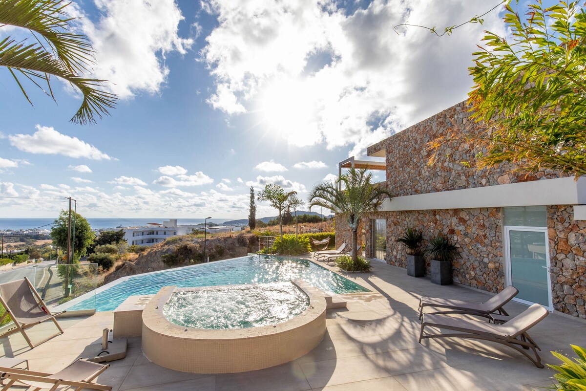 Elegante villa nueva de 4 dormitorios con piscina privada y jacuzzi con vistas a Faliraki. Disfruta de la mezcla perfecta de lujo y tranquilidad en nuestra impresionante villa, ubicada en la pintoresca colina Faliraki de Rodas. Este espacioso refugio de 4 dormitorios ofrece todo lo necesario para una escapada inolvidable, ya sea que estés aquí para unas relajantes vacaciones familiares o una reunión de amigos. Con vistas panorámicas, piscina privada y jacuzzi al aire libre, te espera la escapada de tus sueños.