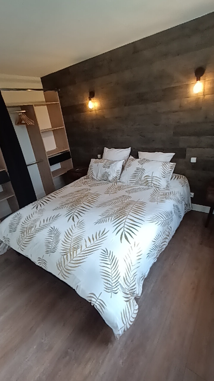Venez vivre une parenthèse romantique dans notre lodge niché en pleine nature. Intimité, confort et ambiance cosy vous attendent. Détendez vous dans votre bain nordique et profitez du calme pour vous ressourcer et vous reconnecter à l’essentiel. Pour plus de confort, notre lodge dispose d’une literie 200x200, d’un espace détente avec mini bar (café et thé à disposition) ainsi que d’une salle de douche. Le petit déjeuner continental (produits locaux) sera déposé le matin devant votre porte.