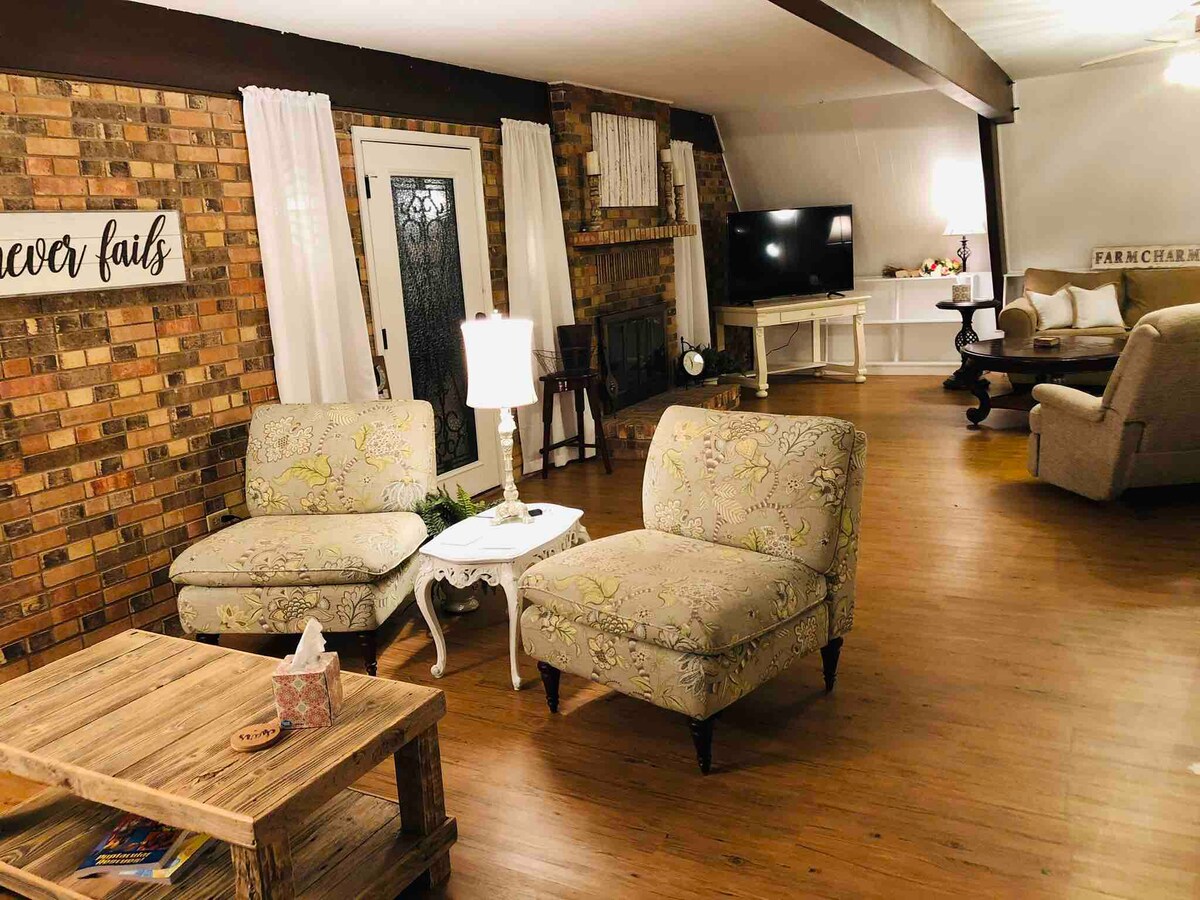 ¿Alguna vez te has alojado en una casa alpina? ¡La gente siempre se sorprende de lo grande que es por dentro! Esta casa tiene capacidad para 9 personas. Esta casa de dos dormitorios y dos baños tiene balcones en ambos dormitorios. Uno en la parte delantera de la casa y otro en la parte trasera. Encontrarás un gran porche cubierto en la parte trasera y el patio tiene árboles de sombra por todas partes. A solo 10 minutos de la I-10 entre San Antonio (1 1/2 horas) y Houston (1 1/2 horas) y justo al sur de Austin (1 hora). R remodelado en la planta baja y cuenta con una chimenea.