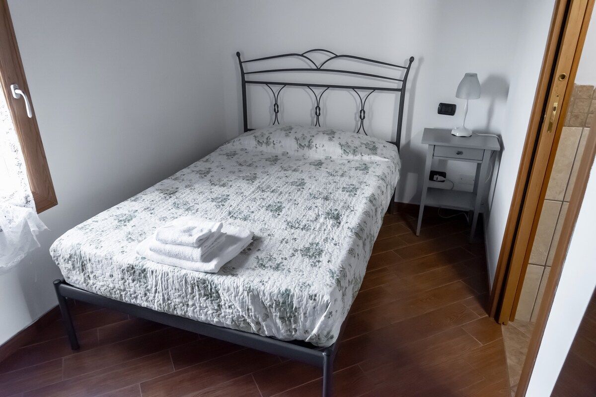 Camera con bagno privato all'interno di un affittacamere. La camera è matrimoniale oppure doppia su richiesta, con bagno privato. È dotata di un servizio di bollitore con una piccola selezione di tè, infusi e biscotti per gestirsi una veloce colazione in autonomia. Per avere due letti separati va fatta la richiesta almeno 1 giorno prima dell'arrivo.