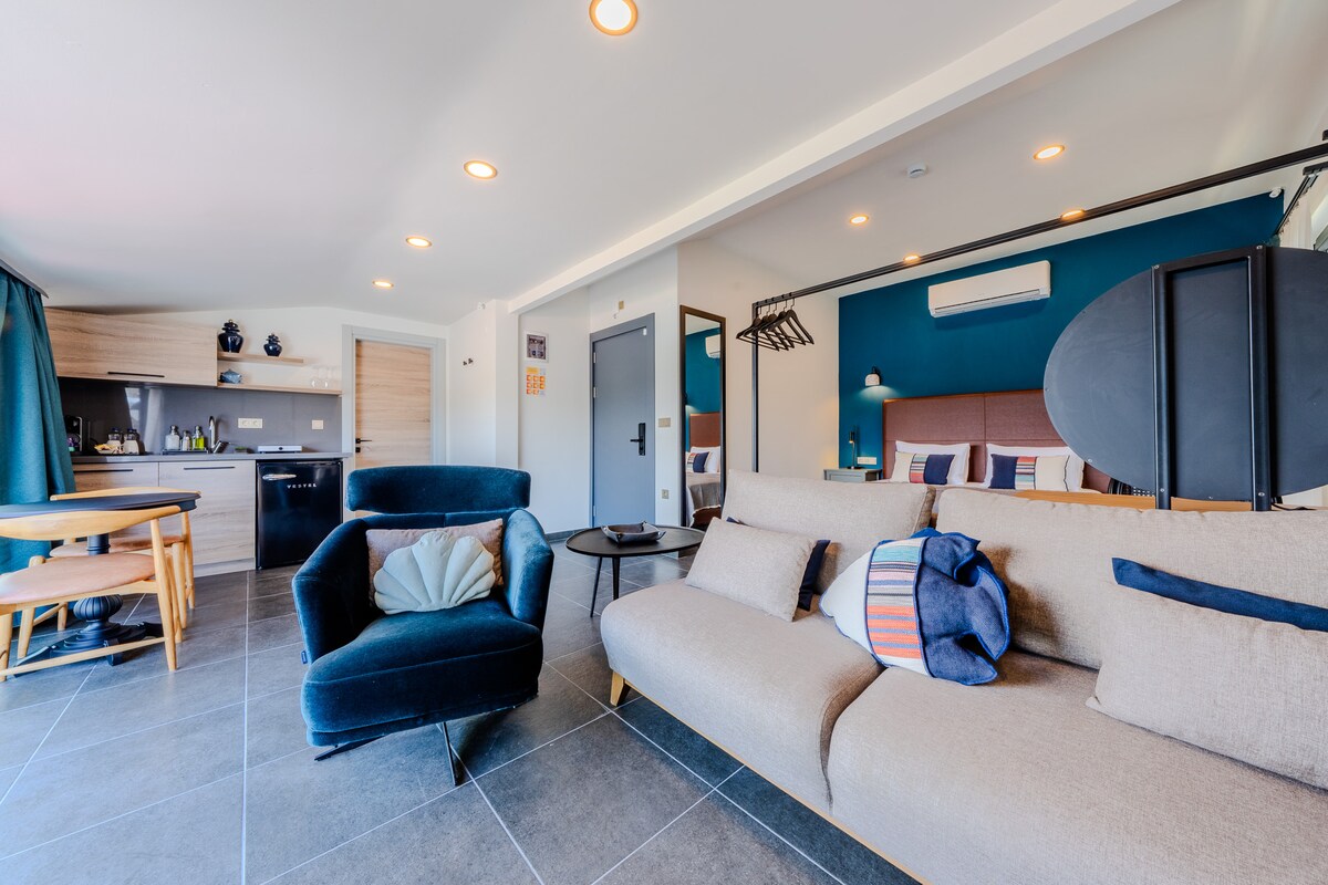 Las suites Nakas, cada una de 50 m2 o más, con un concepto diferente, han sido especialmente diseñadas para ti. Cada suite cuenta con dormitorio, sala de estar, baño y cocina. Estamos deseando darte la bienvenida con sus vistas únicas al mar y su comodidad a una distancia de 5 minutos de las bahías, a 5 minutos del centro y de las zonas comerciales y a 25 minutos de Ölüdeniz.