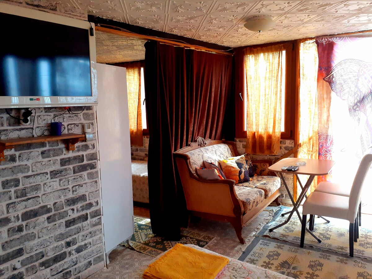 Cocina privada, ducha, inodoro, balcón y nevera. Vistas al mar y a la montaña. Puedes hacer uso de la piscina de la villa de al lado. Es una zona común compartida. Por favor, mantén el silencio y no escuches música a alto volumen. Gracias por tu comprensión. Puedes utilizar la piscina compartida entre 11:00-18:30 Aparcamiento gratuito. 24 horas gratis té café café turco nescafe agua Puedes traer tus bebidas y comida de fuera, sin ninguna obligación. * NO hay cajero automático, supermercado ni gasolinera aquí.