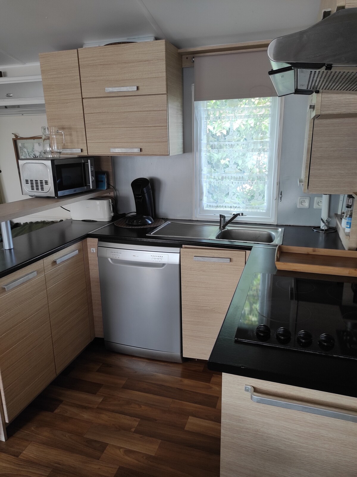 Alójate en el corazón del Domaine de Kerlann en una moderna y luminosa casa móvil, ideal para familias o parejas. Disfruta de una gran terraza totalmente cubierta con muebles de exterior, un salón acogedor, dos cómodos dormitorios, una cocina totalmente equipada con numerosos electrodomésticos (lavavajillas, lavadora y wifi), un baño con ducha espaciosa y WC separado. Posibilidad de aparcar delante de la casa móvil. Una estancia cómoda entre la naturaleza, el océano y la convivencia.