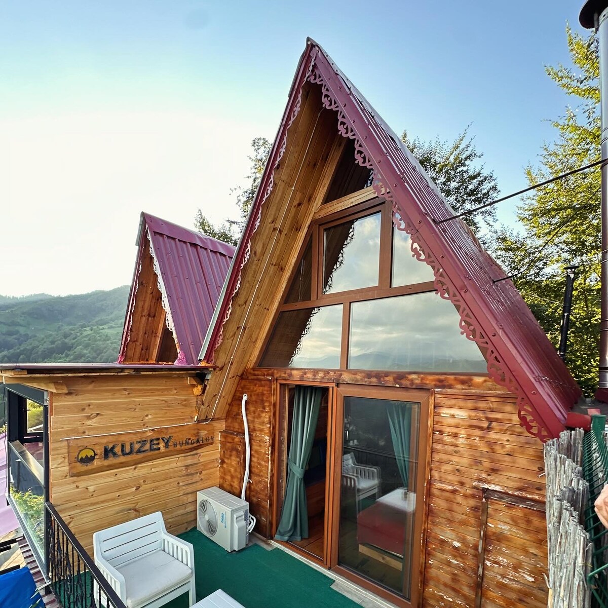 - Nuestra casa bungalow ha sido diseñada completamente de madera y auténtica. - Nuestra casa de bungalow tiene una chimenea y tiene magníficas vistas al valle y a la montaña. - Nuestra habitación tiene un ancho de 45 m2. - Es un concepto que las parejas de luna de miel pueden elegir fácilmente. - El piso inferior tiene forma de sala de estar; hay una cama doble en el piso superior, como balcón, sofá, baño, TV, minibar, etc.