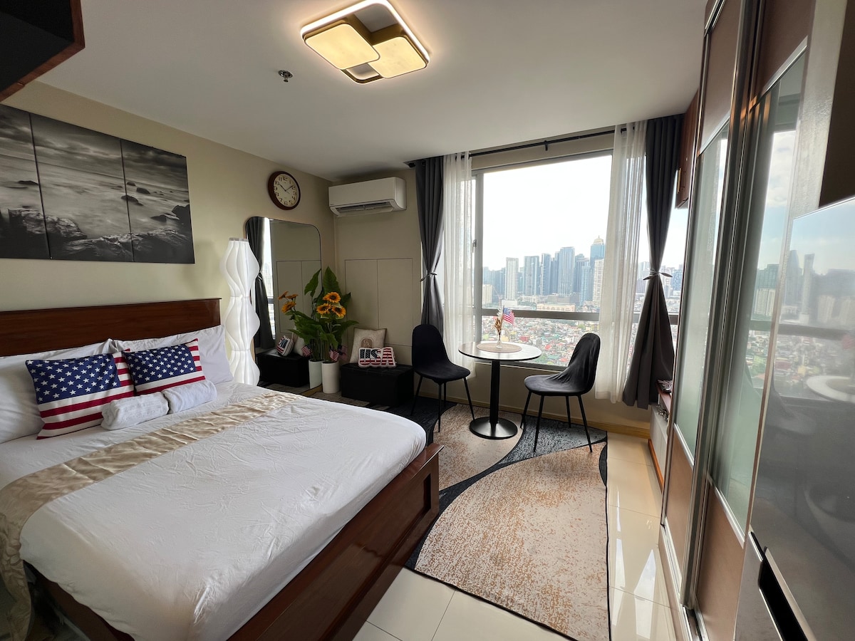 This special place is close to everything, making it easy to plan your visit. Welcome to Marks and Labels (America Inspired Theme Unit) Your serene urban retreat high above the busy streets of Pioneer St, Mandaluyong City. Curated by Marks and Labels, this luxury studio unit in Sunshine 100 Tower 3 City Plaza combines sleek Singaporean style with modern comforts. Whether you’re here to work or unwind, this space offers the perfect blend of convenience, style, and relaxation for your stay.