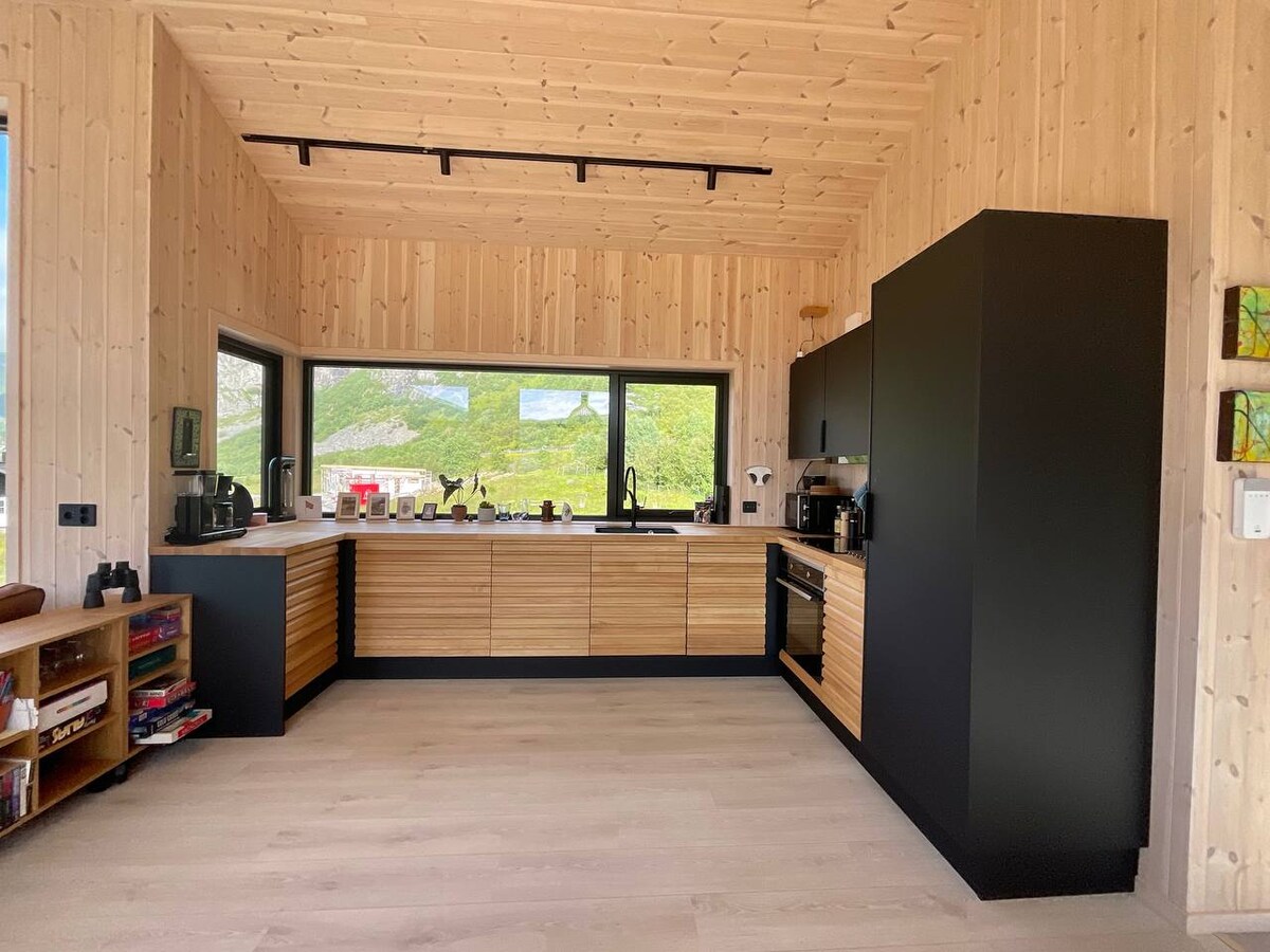¡Disfruta de tus vacaciones en Lofoten en este lugar único! La casa tiene 2 plantas y 3 dormitorios con espacio para 6 personas. Baño, cocina y sala de estar totalmente amueblados/equipados. Amplia terraza alrededor de la casa con varios comedores. Aparcamiento y cargador para coche eléctrico. Jacuzzi junto al mar. Tablas de paddle surf disponibles. Wifi de fibra y escritorio con vistas. Situado cerca de varios lugares de interés como la montaña Ryten y la playa de Kvalvika. La playa de Flakstad es un lugar para practicar surf cerca🏄🏼♂️ Alquiler de Tesla en la ubicación a través de Getaround.