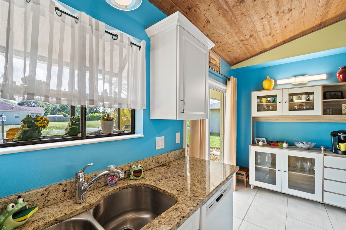 ¡Ubicada junto al mar, esta pequeña y elegante casa de huéspedes con acceso a la playa tiene todo lo necesario para unas vacaciones! Ha sido decorada con buen gusto y remodelada con muebles, electrodomésticos y mucho más, todo nuevo. La unidad tiene una terraza trasera privada con sillas para sentarse y escuchar el océano. Convenientemente ubicado cerca de Starbucks, restaurantes, heladería y a solo 10 minutos en coche del centro histórico de Melbourne.