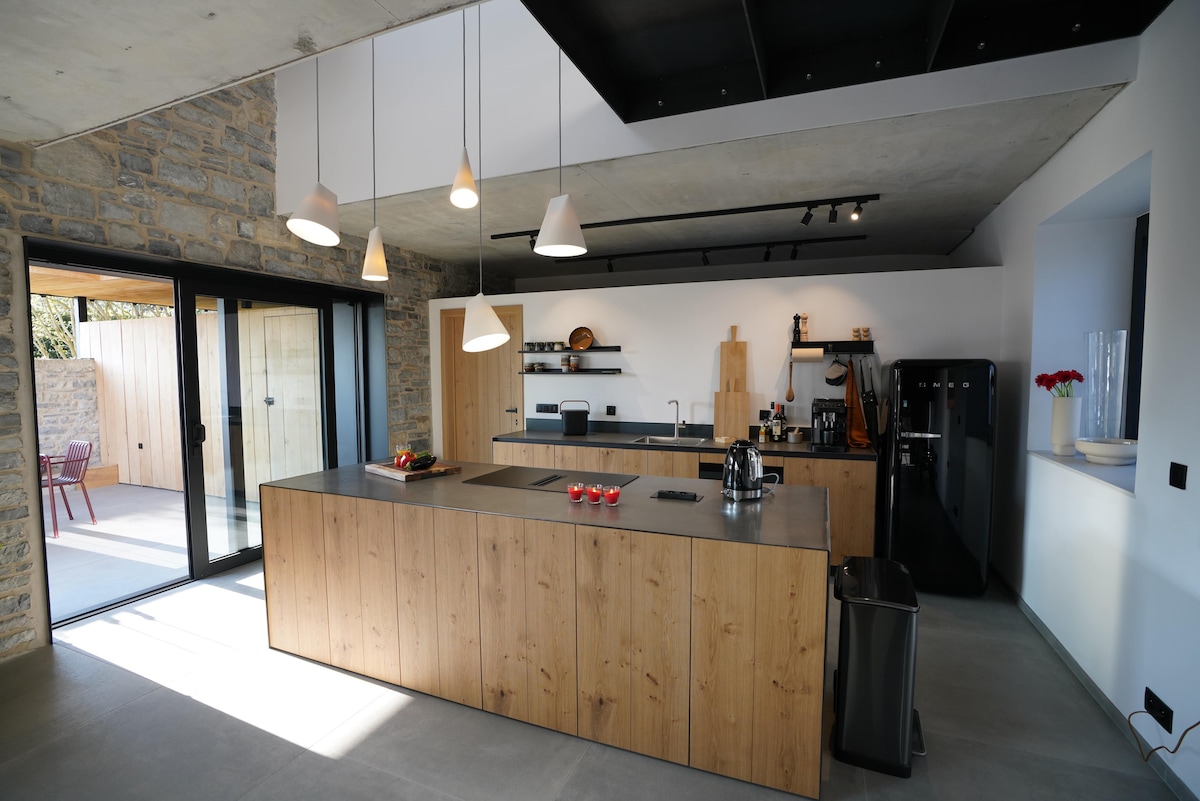 ¿Buscas un lugar verdaderamente único para sorprender a tu pareja? ¿Para celebrar una ocasión especial? ¿O simplemente para retirarte a un lugar tranquilo después de un día estresante? Entonces ven a El Clandestino - Luna, situado en medio de una reserva natural a 5 minutos del centro de la maravillosa ciudad de Dinant. ¡Te sentarás en lo alto de una colina con una vista asombrosa de la ciudad y al mismo tiempo estarás en medio del bosque! La casa está totalmente equipada con su propio pozo privado, Netflix, chimenea.