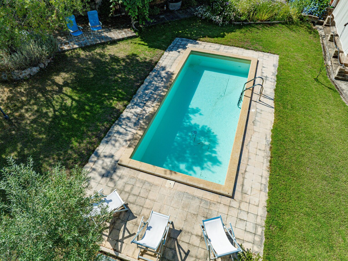 La villa está rodeada por un jardín de 1500 metros cuadrados con pinos, plantas mediterráneas y flores, e incluye una playa de arena privada que bordea directamente el mar. Está compuesta por una sala de estar, una cocina, dos dormitorios dobles, un dormitorio con una litera y dos baños (uno de los cuales en una pequeña estructura externa). Cuenta con aire acondicionado y una bomba de calor. En el parque, hay una cocina al aire libre y una gran mesa debajo de un cenador en la playa, lo que te permite comer justo enfrente del mar.