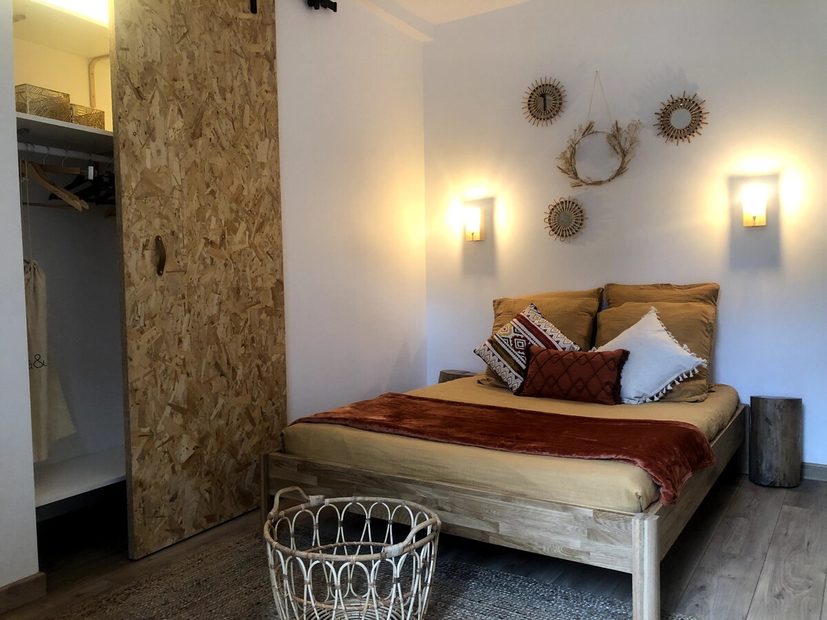 Chambre, jacuzzi, terrasse et jardin clos