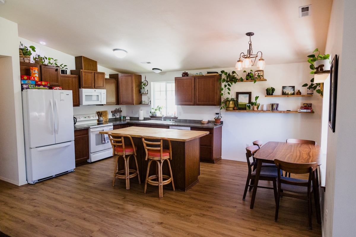 Disfruta de Forks y su belleza circundante en esta encantadora casa enclavada en un barrio tranquilo a solo un par de cuadras de Main Street. Este espacio ofrece todas las comodidades de casa: dormir es acogedor y cálido, hay amplios asientos cómodos en la sala de estar con una decoración atractiva y la cocina completa está equipada con todas las necesidades de cocina para disfrutar de comidas de cualquier tamaño. Internet rápido y fiable con Starlink. Sumérgete en la combinación de bañera/ducha de gran tamaño después de una caminata fría o un día de pesca. ¡Base perfecta para el hogar!