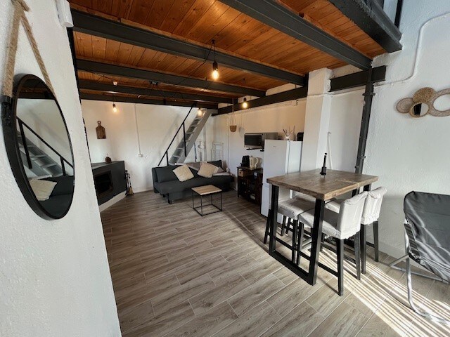 Gran loft con maravillosas vistas a la montaña y el Jardín Botánico del municipio. Es la planta de arriba de una casona restaurada de principios del S. XVIII. El loft es abierto, tiene una zona con cama de matrimonio y dos terrazas, otra zona comedor con smart TV y sofás y otra zona con un sofá-cama doble. Además tiene baño con ducha y un altillo al que se accede por una escalera espectacular en el que está la cocina, completamente equipada y con zona de comer Ideal para una o dos parejas.