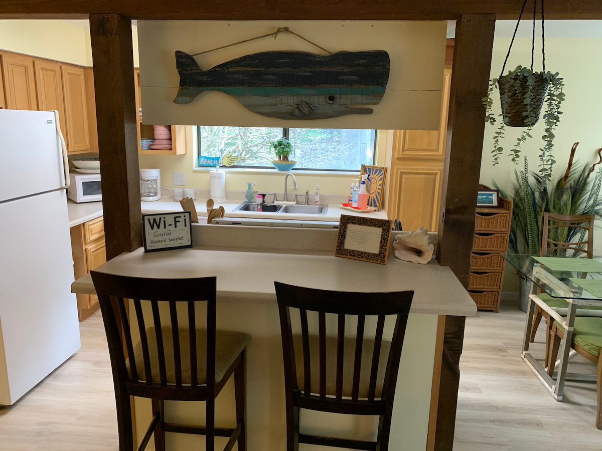 Your Island getaway awaits! You’ll love our cheerful, private access gem. Central location makes exploring a breeze. Less than 5min from historic downtown shops, restaurants, trails, jogging, golf, horse rides, surf, even skydiving! Enjoy a Queen bed, wifi, TV, small kitchenette, coffee station, laundry room w/Wash&Dryer, (baby Pack&Play), updated bathroom, work desk, covered parking, patio & more! Note: Verified ID's & a few positive (Airbnb or similar) reviews are all that's needed.