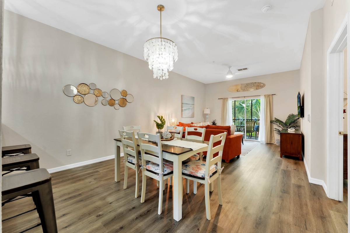 ¡Bienvenido a nuestro hermoso apartamento en la planta baja! Con una ubicación privilegiada en ChampionsGate Resort, cerca de Disney World y los principales parques, este apartamento de 2 dormitorios y 2 baños está diseñado para que disfrutes de tu mejor alojamiento. Distribuido en 1558 pies La unidad ofrece una cocina totalmente equipada, una acogedora sala de estar, una estación de trabajo y cómodos dormitorios. Con acceso a la casa club y a los servicios del centro vacacional, ¡pasarás días increíbles en nuestro hogar!