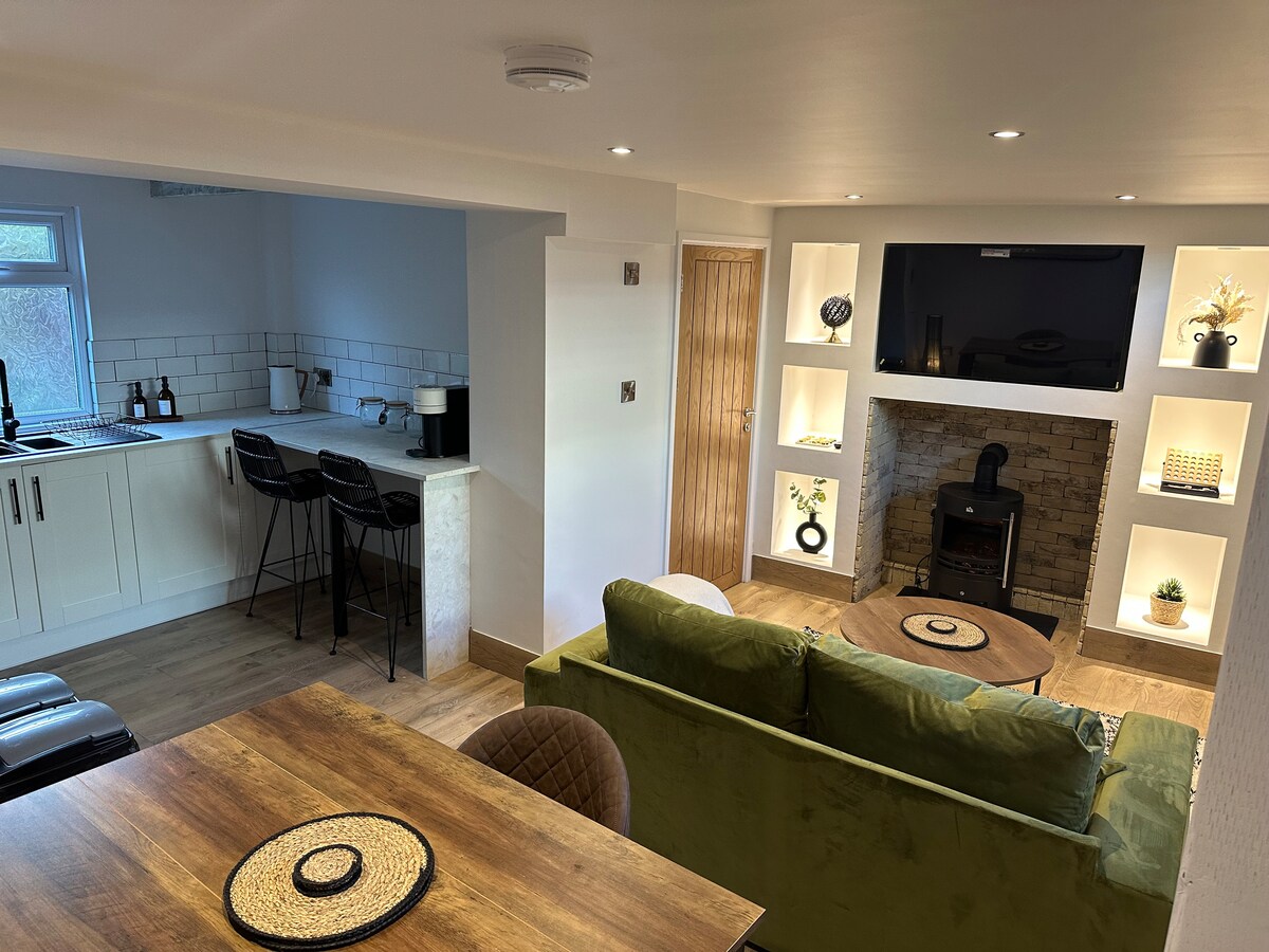 Casa privada cwtch/cubby de 1 dormitorio. Se admiten mascotas. Ideal para un retiro tranquilo de fin de semana y una buena base para explorar la hermosa costa, retrocediendo a las dunas de arena y junto al sendero costero del Milenio. El dormitorio, el comedor y la cocina pequeña forman una habitación con un pequeño baño separado. TV e internet. El sofá pequeño se puede convertir en una cama. Mesa de comedor con 2 sillas. La cocina pequeña tiene microondas, hervidor, tostadora, nevera y fregadero. POR FAVOR, TEN EN CUENTA: NO HAY HORNO. Calefacción de quemador de leña y calefactor eléctrico.