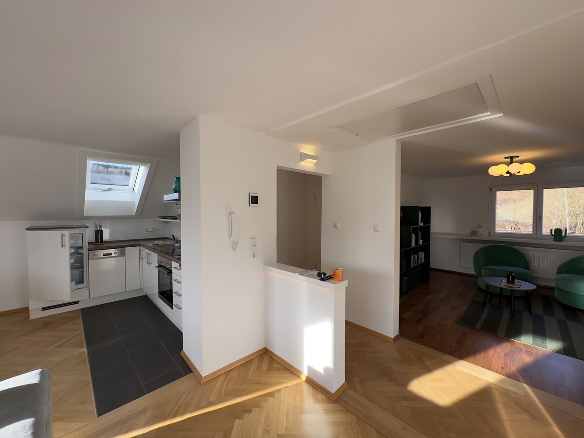 Acogedor ático con cocina-salón bien equipada y bonito dormitorio con balcón en el corazón de Frauenau